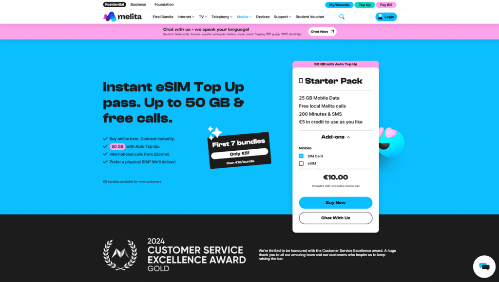 Then, after getting a Melita Malta SIM card, you can avail yourself of the following bundles:
