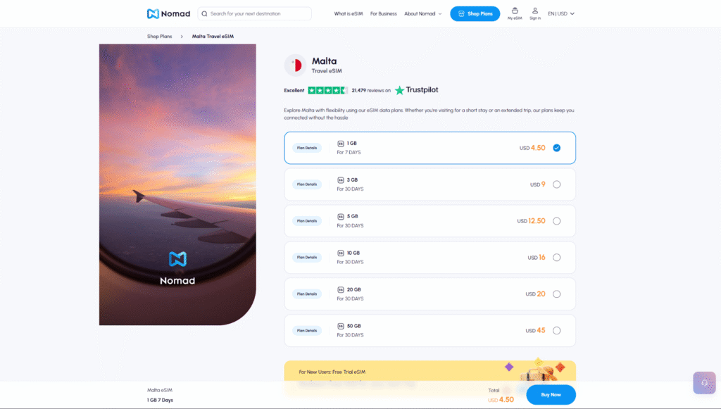 Some Malta eSIM plans offered by Nomad include: