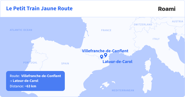 The Little Yellow Train became a cheerful symbol of the Pyrenees. Painted in vivid colors, it crawled up steep gradients and crossed dramatic bridges, including the stone-built Séjourné Viaduct and the steel Gisclard suspension bridge. It carried locals and tourists alike through rugged gorges, alpine meadows, and snow-covered peaks.